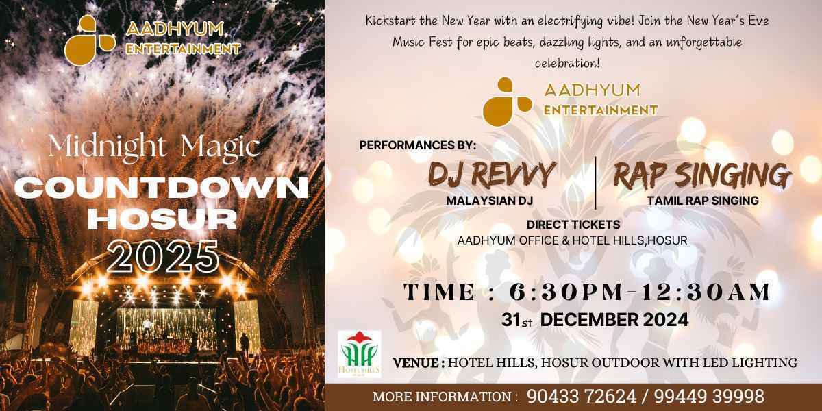 09:00 PM - 12:30 AM DJ (COUNTDOWN HOSUR 2025)
